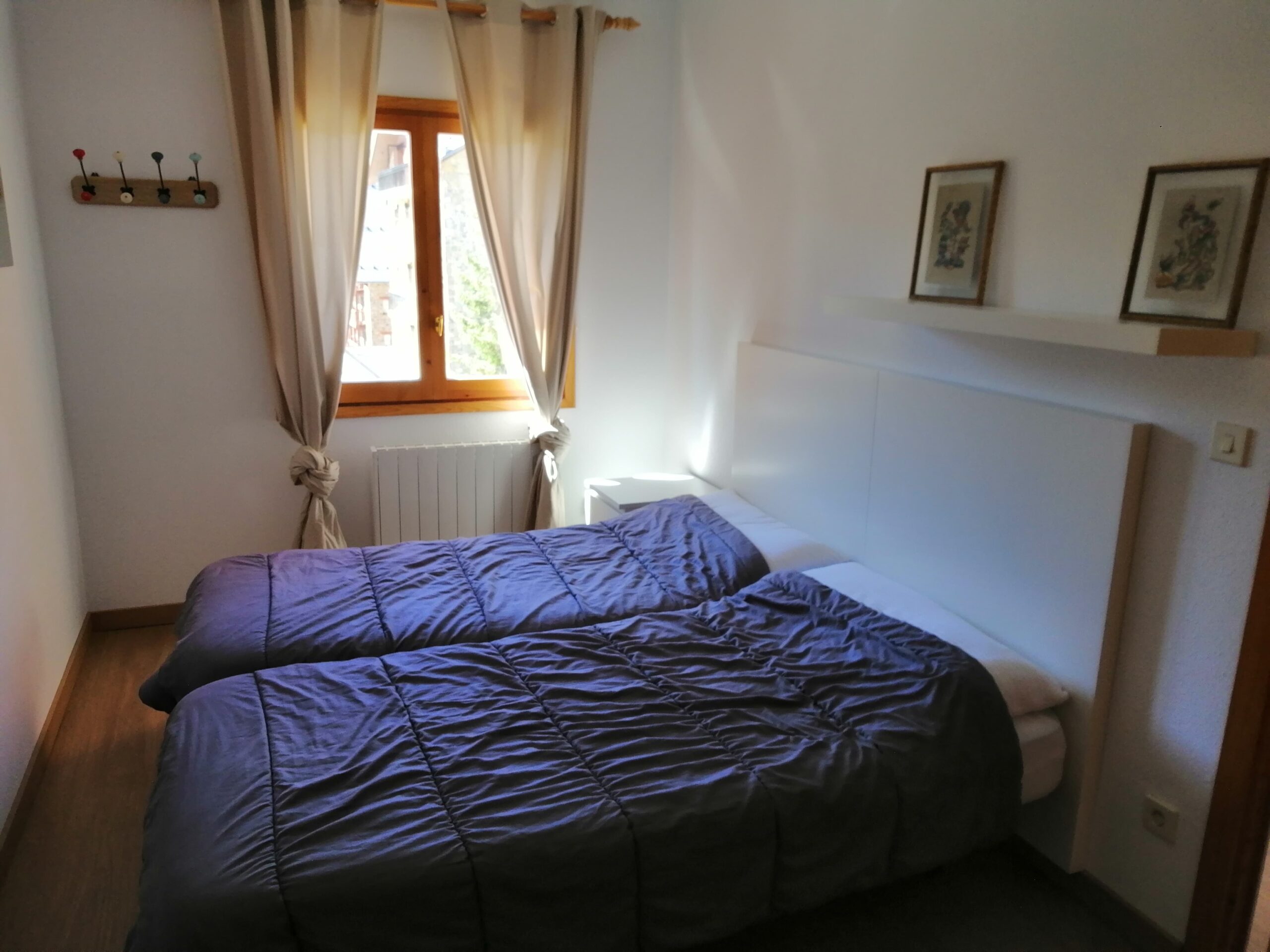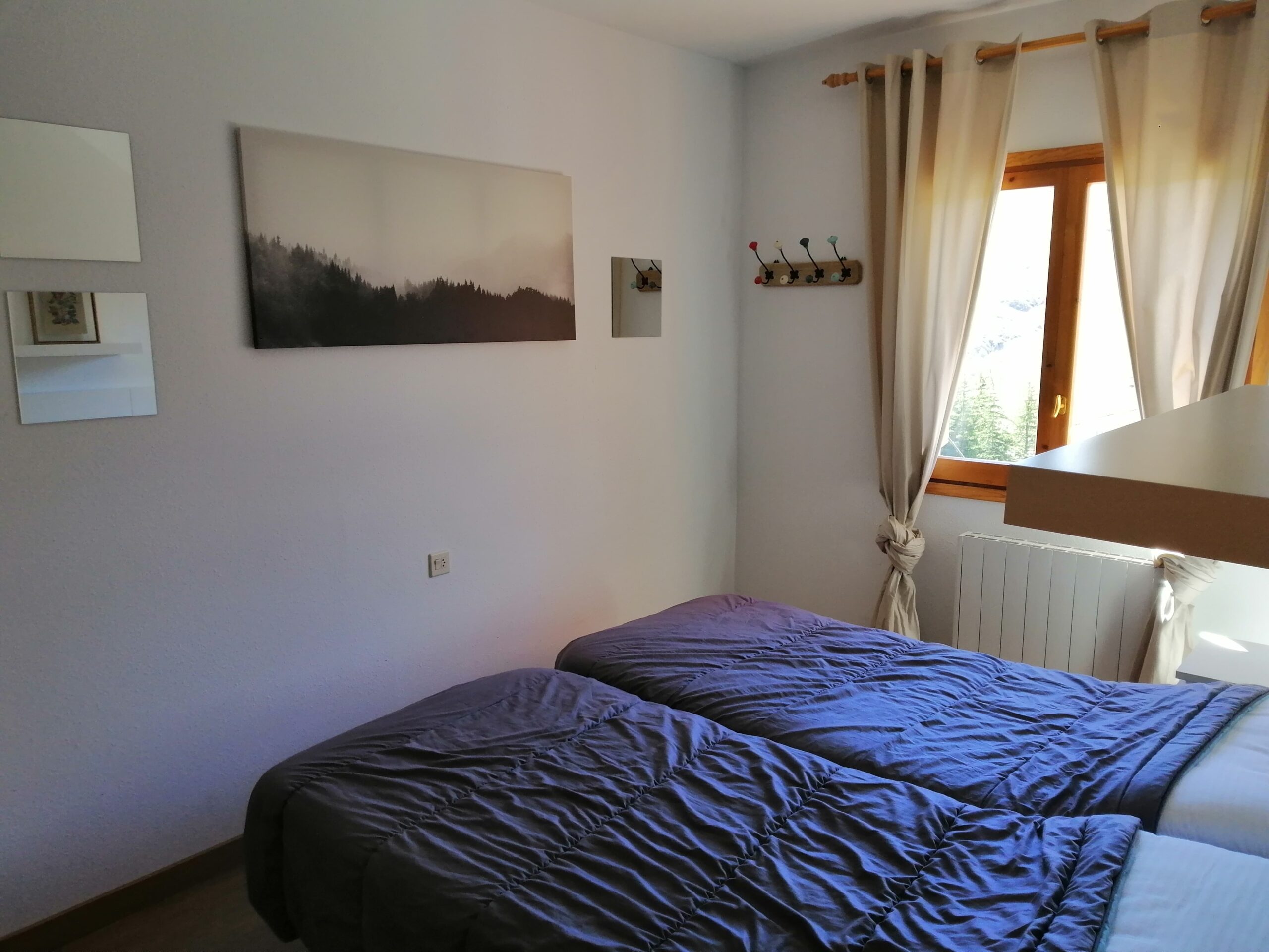 Situado en una plaza céntrica con parque infantil, el apartamento está cerca de los comercios y servicios disponibles en Formigal y a 2 minutos andando de la plaza del reloj desde la que salen los autobuses a pistas. Tiene vistas a las pistas del Bosque de la estación. El aparcamiento es gratuito en la calle, pero el apartamento cuenta con plaza de garaje en el mismo edificio. Tiene 60 metros cuadrados distribuidos en comedor, salón, cocina totalmente equipada, dos habitaciones, la principal con baño incorporado y otro segundo baño. Tiene Wifi. Cuenta con un guardaesquís en la entrada del edificio.